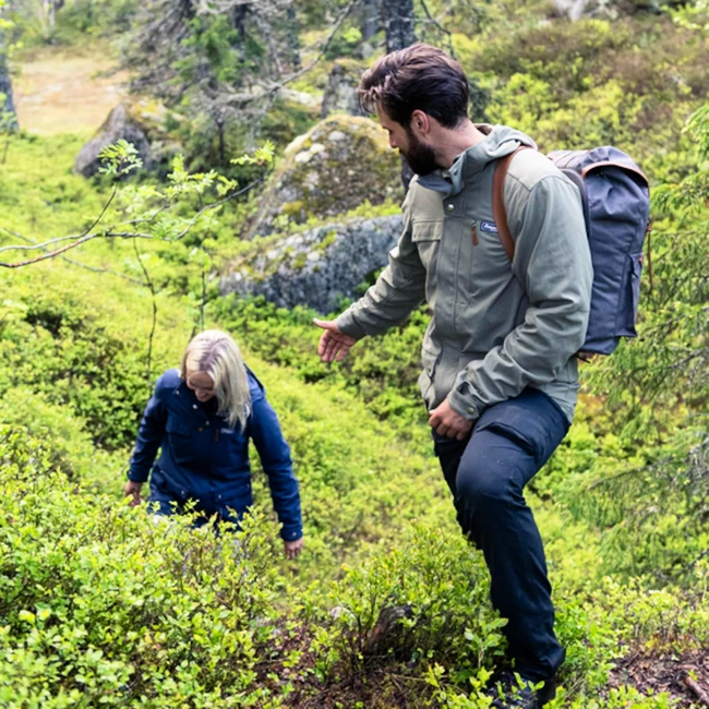 La veste à capuche pour homme Bergans Nordmarka en bleu foncé est une veste très confortable, respirante et résistante que vous pouvez parfaitement utiliser en extérieur. La veste est coupe-vent et déperlante, ce qui signifie que la veste vous protégera parfaitement, lors de vos randonnées, vraiment par tous les temps.