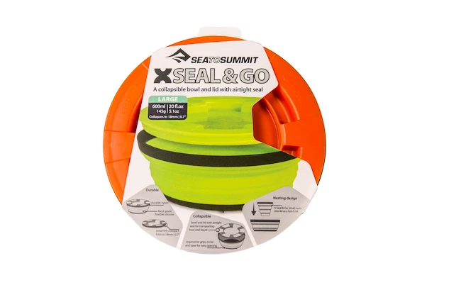 Le Sea to summit X-Seal & Go Large est une gamelle intelligemment conçue pour les voyages. Savourez un repas dans la nature. Le bol est fabriqué en silicone léger. Sans BPA. Le bol est fourni avec un couvercle, de sorte que le reste de la nourriture peut être scellé à l’intérieur et conservé pour plus tard.