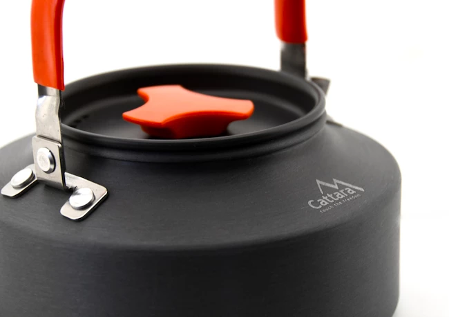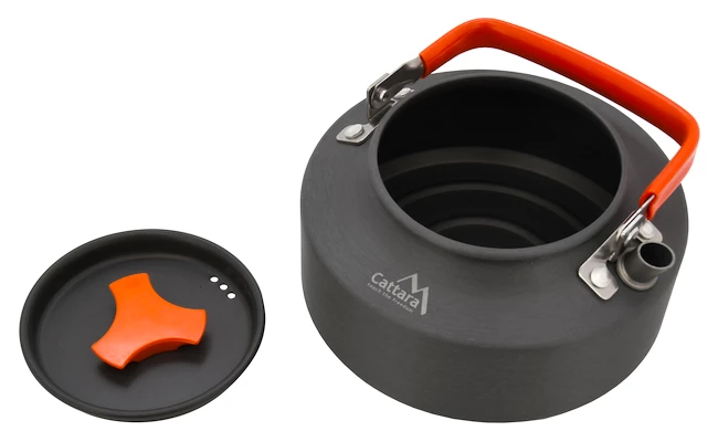La théière Cattara ORANGE 1100ml est une théière de 1,1 L en aluminium anodisé avec un couvercle. Le diamètre du fond de 15 cm et la hauteur de 8,5 cm rendent la bouilloire suffisamment volumineuse pour faire infuser du thé pour toute la famille, un groupe de campeurs ou d’autres amateurs de plein air.