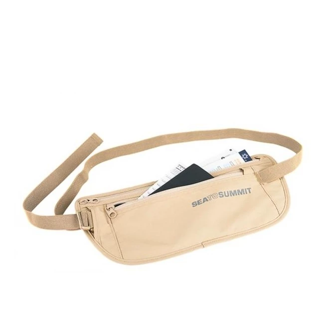 Dans le simple sac banane sous le t-shirt Sea to Summit Money Belt, vous pouvez cacher non seulement de l’argent, mais aussi des documents ou un billet pendant vos voyages.