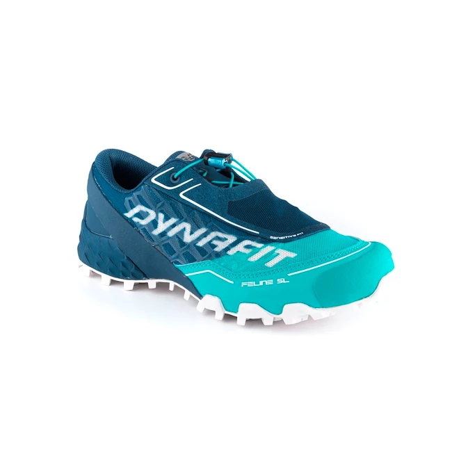 Les chaussures Dynafit Feline SL Poseidon/Silvretta pour femmes sont des chaussures de course polyvalentes au motif agressif, adaptées aux sols mous, à la neige et à la boue. La Feline SL possède une semelle POMOCA pour une adhérence parfaite même mouillée. Le motif relativement agressif convient aux surfaces molles telles que la boue ou la neige. L’ajustement amélioré signifie plus de confort pour la course à mi-distance sur une variété de terrains. Heel Proloader offre un excellent soutien et une excellente fixation du talon et de la cheville. Le système de laçage rapide peut être rangé en toute sécurité sous le panneau extensible spécialement conçu. Vos orteils sont protégés des chocs par une tranchée en caoutchouc à l’avant de la chaussure.