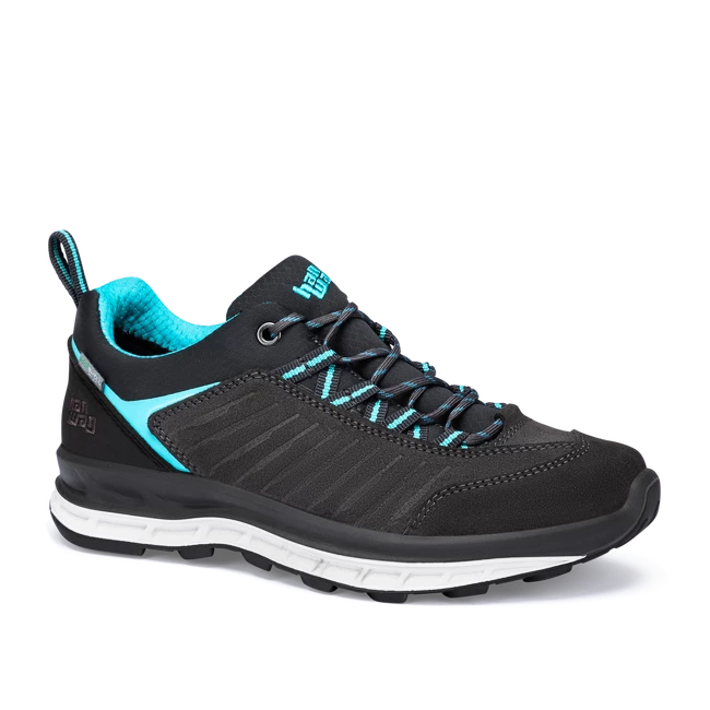 Les chaussures Hanwag Blueridge Low ES Asphalt/Ocean pour femmes sont des bottes multifonctions confortables avec une coupe en dessous de la cheville et un sac à dos léger. Style moderne, léger et confortable : la Blueridge Low Lady ES est une chaussure de randonnée légère adaptée à de nombreuses utilisations, dotée d’éléments durables innovants. Par exemple, l’utilisation de cuir Perwanger durable pour la partie supérieure ou d’un élément textile 100 % recyclé de la partie supérieure « Global Recycling Standard » et de la membrane imperméable sans PFC. Imperméable, respirante et durable : HANWAG a conçu sa propre membrane en PU basée sur un système hydrophile complexe qui assure imperméabilité et respirabilité sans utiliser de fluorocarbures.