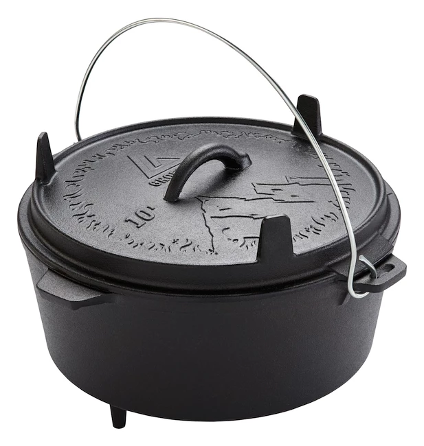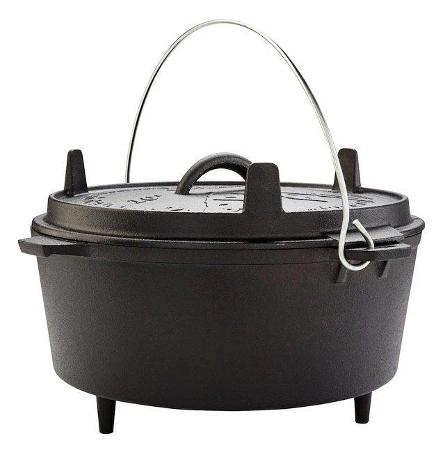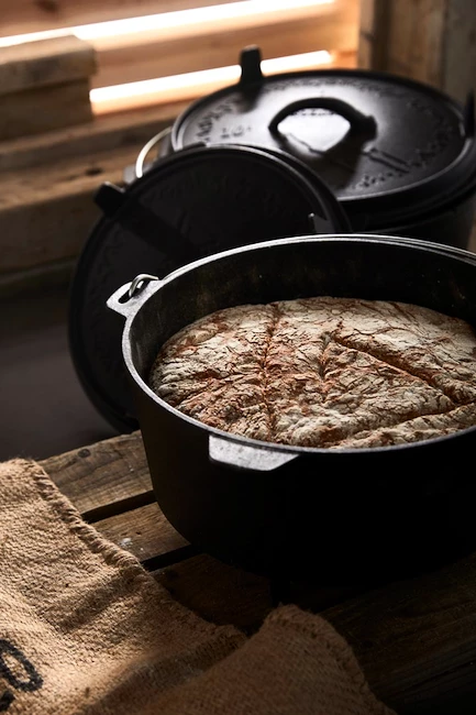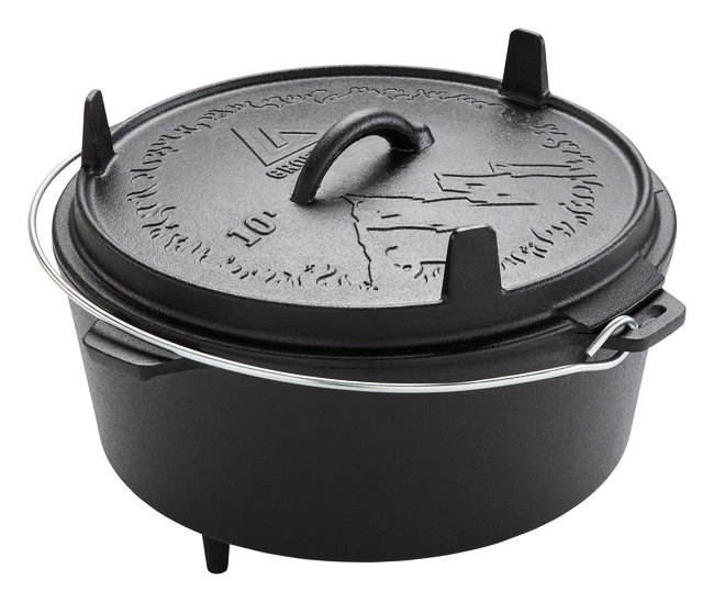 La marmite Groenberg Askja 10 L est une marmite en fonte à haute conductivité thermique, durable et dotée d’un couvercle. De cette façon, les ragoûts, les soupes, les légumes ou la viande deviennent un plaisir luxueux. Le couvercle est légèrement creusé pour que l’eau condensée à l’intérieur puisse s’écouler vers le bord et rien ne coule lorsque le couvercle est soulevé. La sortie de vapeur située sur le couvercle empêche les cliquetis désagréables ou la surcuisson. Particulièrement pratique : le couvercle peut également servir de casserole ou de plat de service et, grâce aux pieds situés sur le dessus, il est légèrement surélevé et absolument sûr. Convient pour le gril, la cuisinière à gaz, le four ou le feu ouvert.