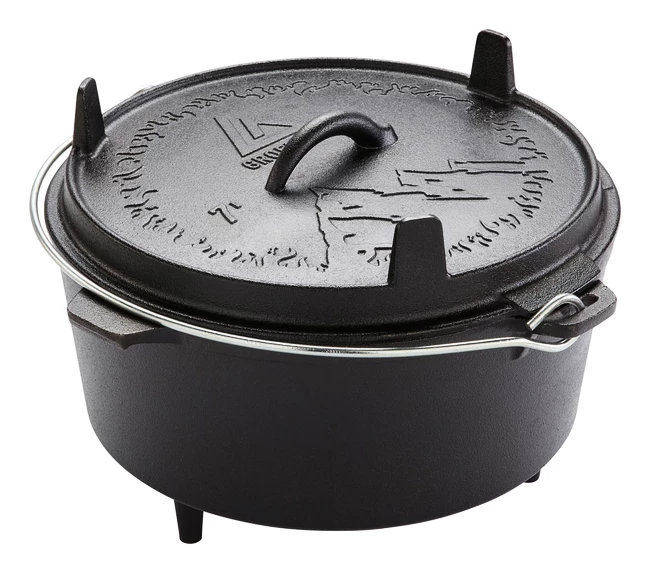 La marmite Groenberg Askja 7 L est une marmite en fonte à haute conductivité thermique, durable et dotée d’un couvercle. De cette façon, les ragoûts, les soupes, les légumes, la viande ou deviennent un plaisir luxueux. Le couvercle est légèrement creusé pour que l’eau condensée à l’intérieur puisse s’écouler vers le bord et rien ne coule lorsque le couvercle est soulevé. La sortie de vapeur située sur le couvercle empêche les cliquetis désagréables ou la surcuisson. Particulièrement pratique : le couvercle peut également servir de casserole ou de plat de service et, grâce aux pieds situés sur le dessus, il est légèrement surélevé et absolument sûr. Convient pour le gril, la cuisinière à gaz, le four ou le feu ouvert.