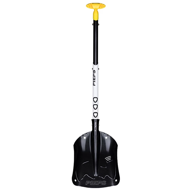 Pelle télescopique avalanche avec un manche en « T » et une grande lame, adaptée au ski alpinisme ou au creusement rapide de bivouacs n’importe où.