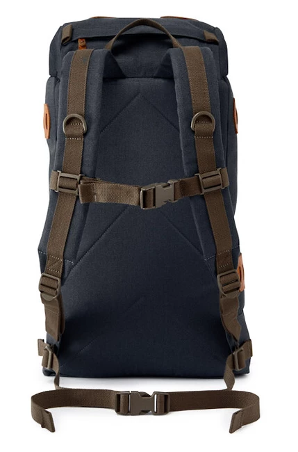 Lo zaino è realizzato in tessuto canvas resistente e i piccoli dettagli, come i passanti per la cerniera e gli occhielli per agganciare materiale aggiuntivo, sono in pelle.