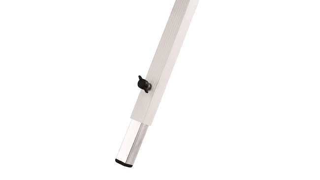 Une table robuste et spacieuse avec un grand plateau noir et des pieds pliants en forme de croix. Le pliage après utilisation ne pourrait être plus facile, il suffit de retirer le plateau de la table et de le plier avec les pieds dans le sac. Il peut donc être plié et déplié en quelques secondes. La construction de la table est en aluminium, ce qui permet de la transporter avec une légèreté agréable. Les pieds de la table sont réglables.