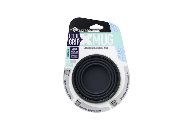 Sea to summit X-Mug Cool Grip pour une consommation confortable des boissons partout en plein air. Le mug est robuste et maintient le liquide à la température souhaitée pendant longtemps, et il n’y a aucun risque de brûlure en cas de boisson chaude. Il est fabriqué en silicone de qualité alimentaire.